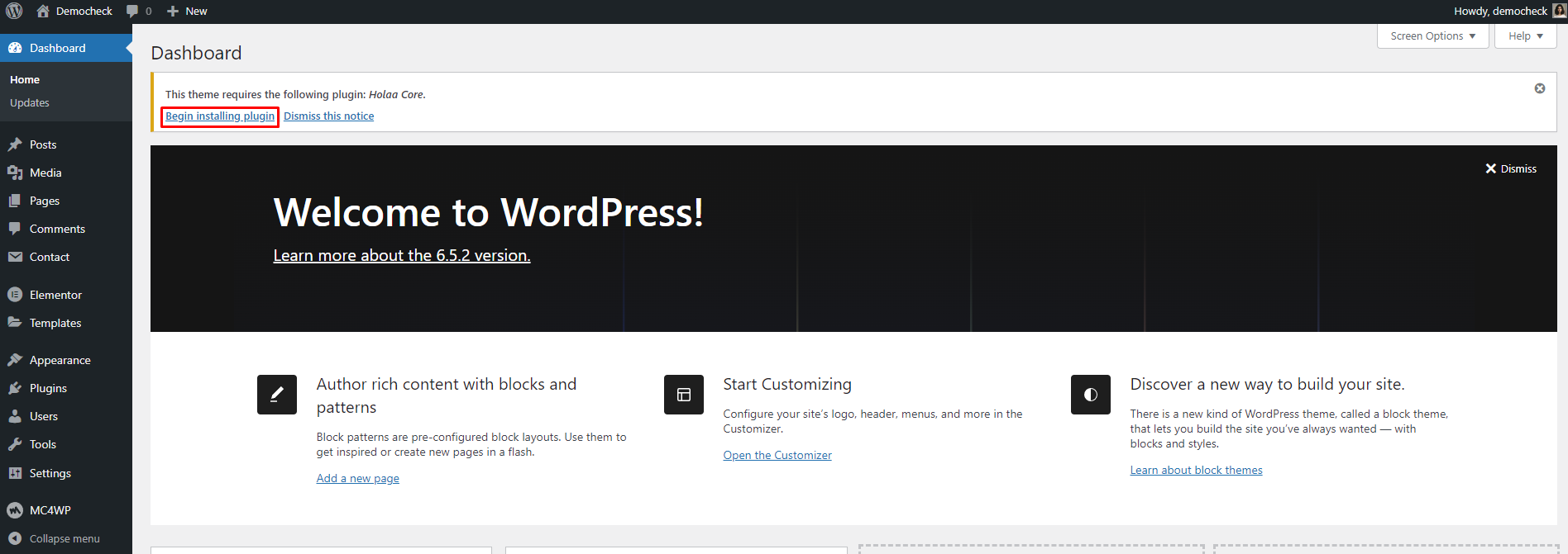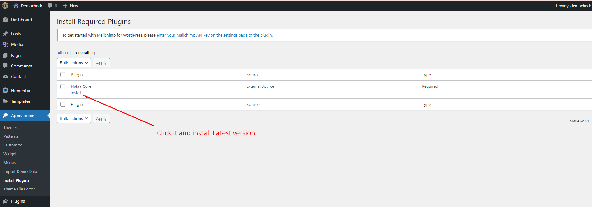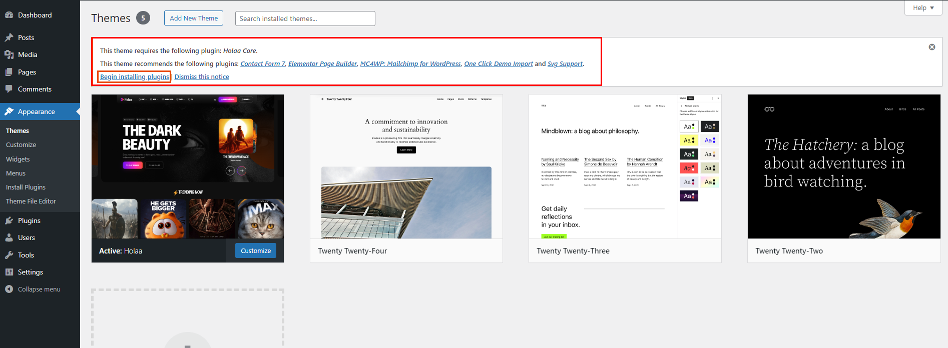 Once you activate the Holaa theme You will get a notice for installing the required plugins.