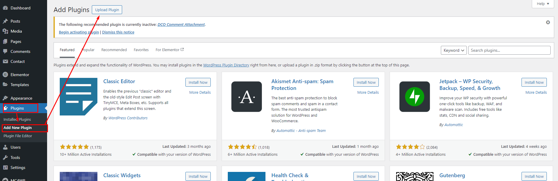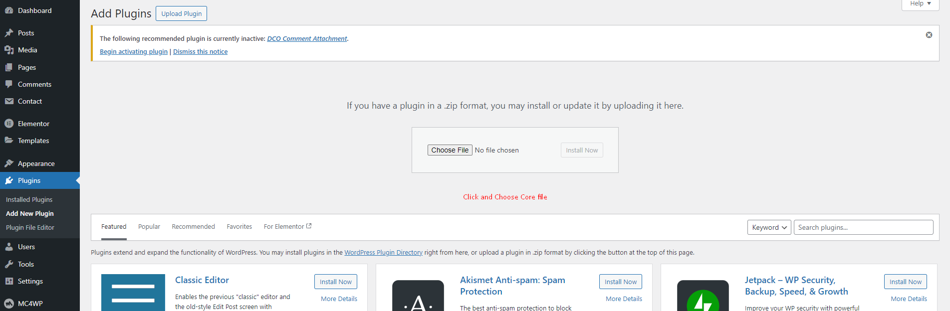Click on Add New plugins to install Core plugins.