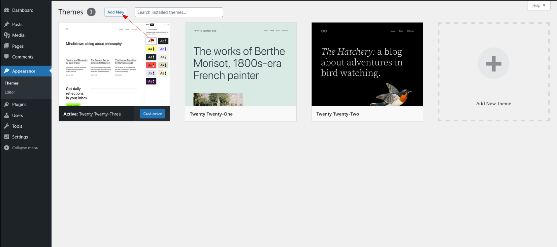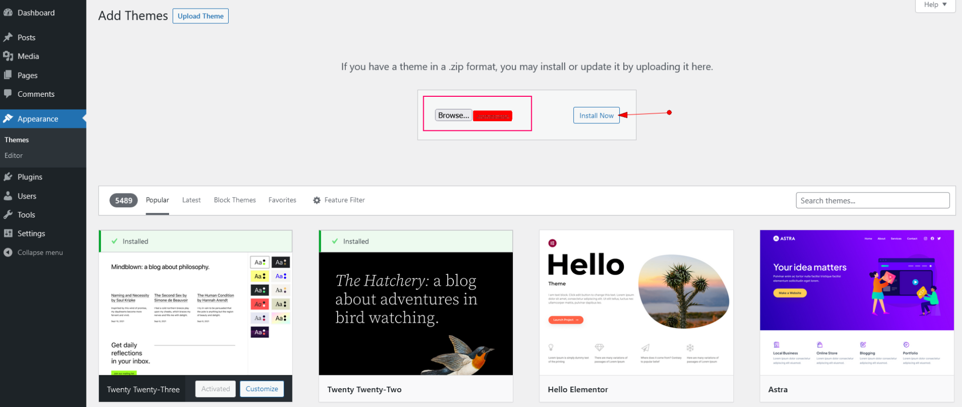 Install Theme WordPress Dashboard