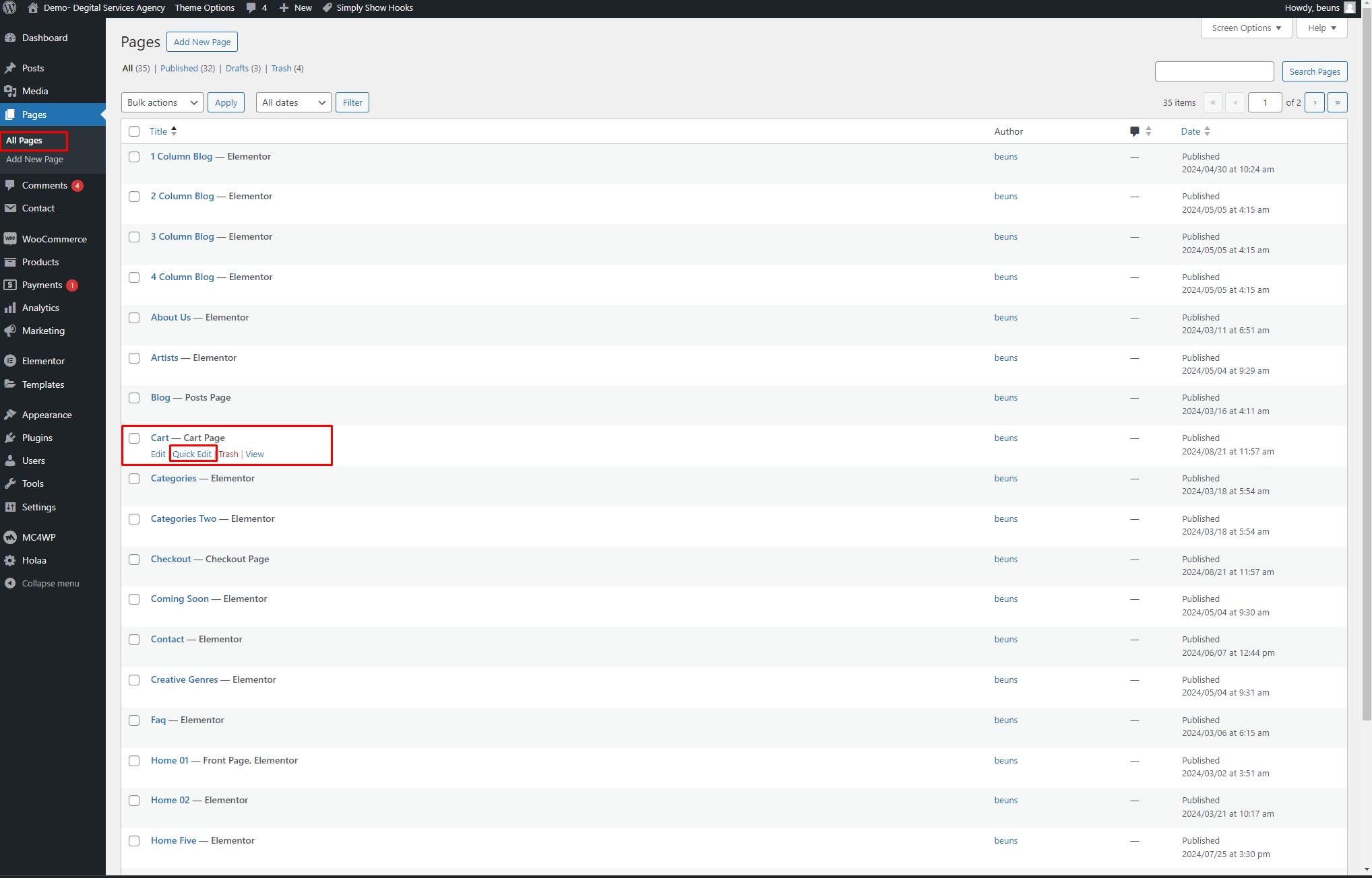 • Step 01 Go to Pages > All Pages