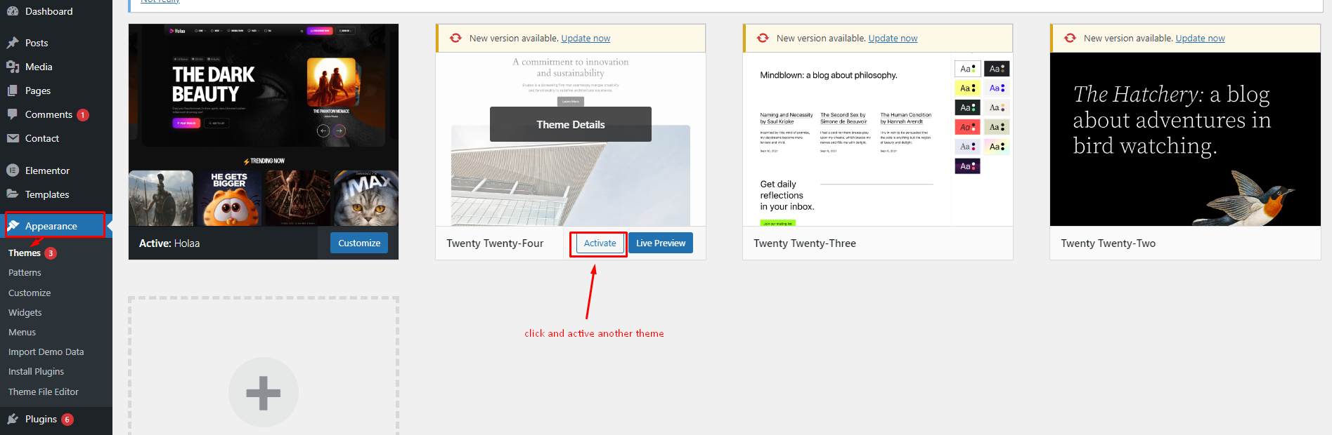 • # You will now see holaa listed among the other themes. Just activate it!