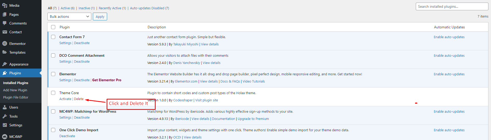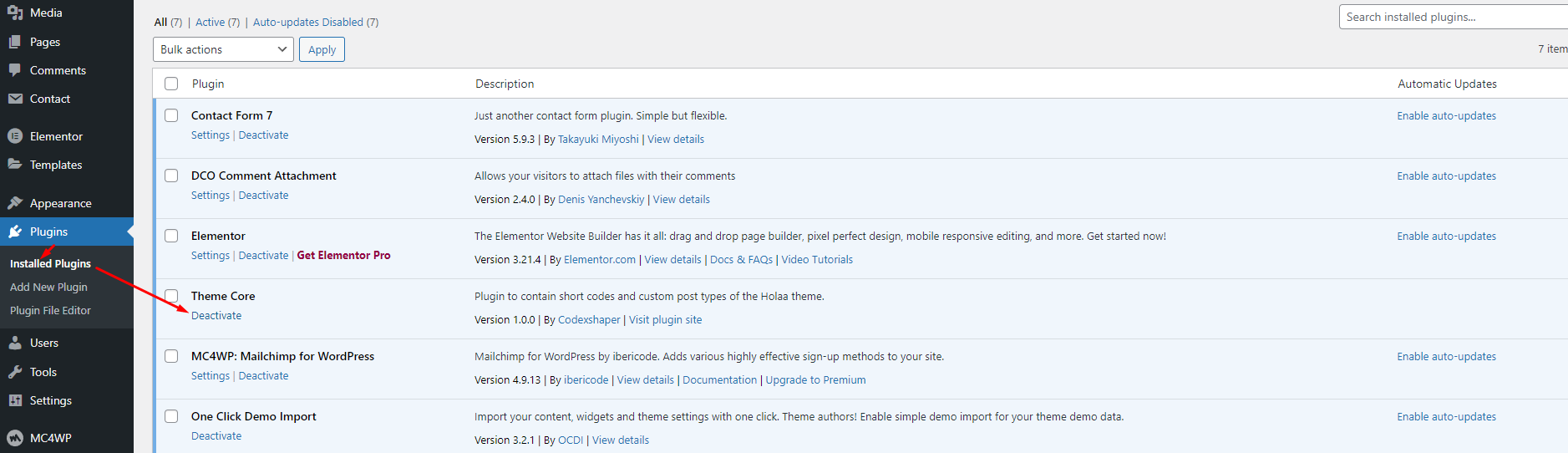 Click Active plugins